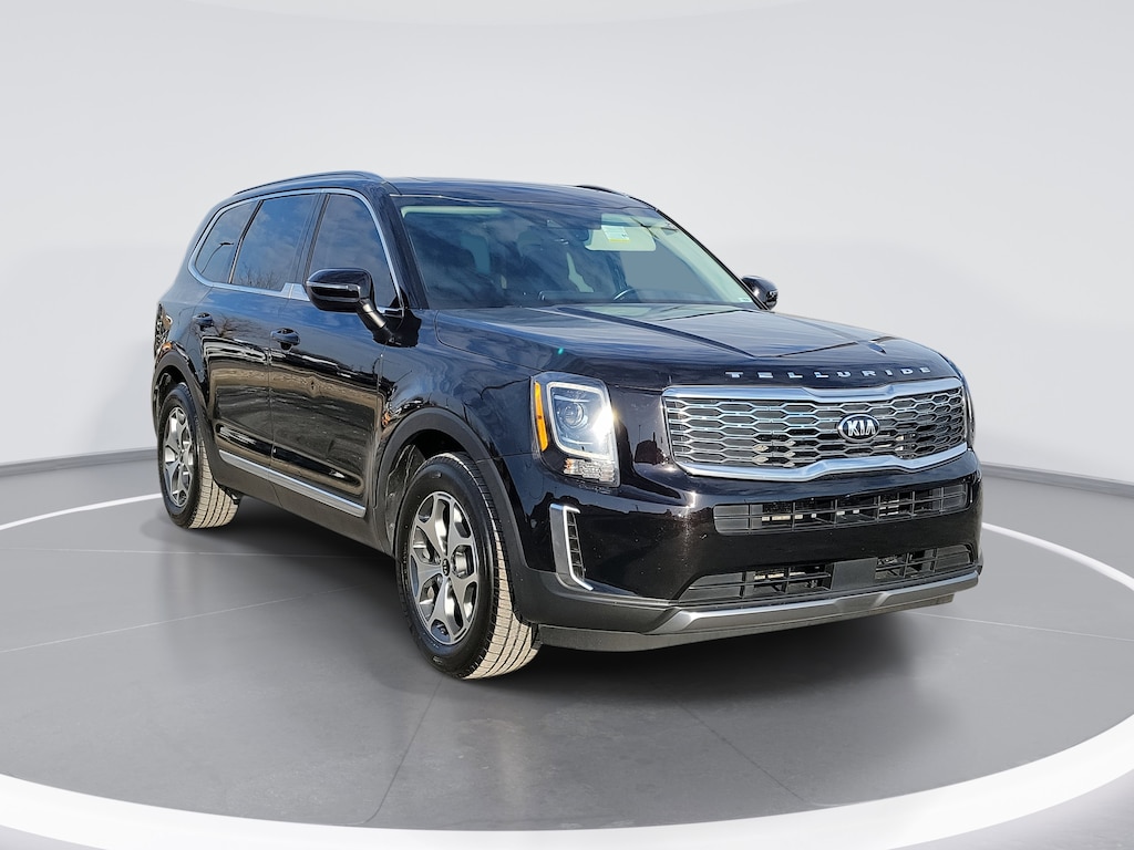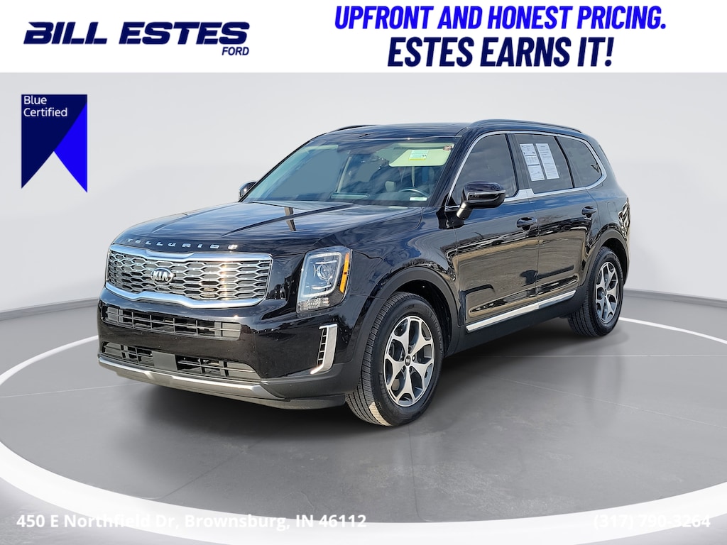 The 2021 Kia Telluride EX delivers bold styling, a spacious three-row interior, and smooth V6 performance in one of the most sought-after midsize SUVs on the road. Finished in Black Copper with a Black leather interior, this Telluride offers upscale comfort, advanced safety technology, and impressive everyday versatility - further supported by Ford Blue Certification for added peace of mind.