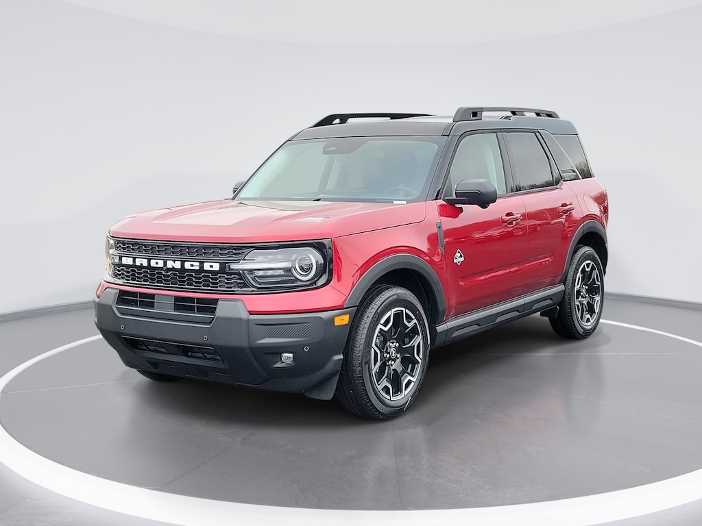 Ruby Red Metallic Tinted Clearcoat 2025 Ford Bronco Sport Outer Banks 4WD 8-Speed Automatic 1.5L EcoBoost 360-Degree Camera w/Trail & Split View, Auto High-beam Headlights, Automatic temperature control, B&O Sound System by Bang & Olufsen, Connected Navigation, Equipment Group 300A, Fully automatic headlights, HD Radio, Heated front seats, Outer Banks Tech Package+, Rear Parking Sensors, SYNC 4 w/Enhanced Voice Recognition.