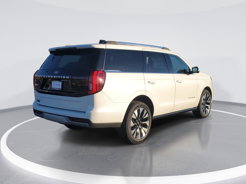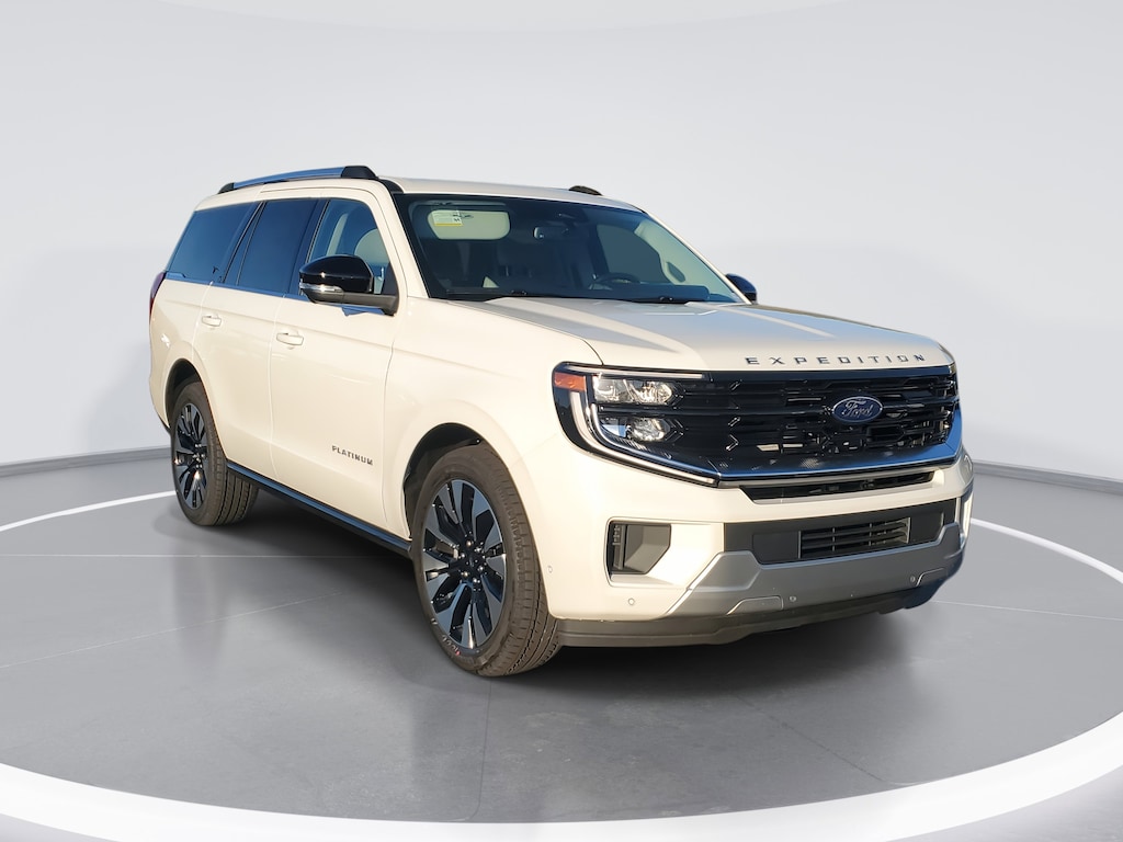 Star White Metallic Tri-Coat 2025 Ford Expedition Platinum 4WD 10-Speed Automatic EcoBoost 3.5L V6 GTDi DOHC 24V Twin Turbocharged 4WD, 2nd Row Power-Folding Captain's Chairs, AM/FM radio: SiriusXM with 360L, Auto High-beam Headlights, Automatic temperature control, Continuous Control Damping Suspension, Driver's Package, Equipment Group 600A Standard Package, Exterior Parking Camera Rear, Fully automatic headlights, Heated & Ventilated Leather Front Captain's Chairs, Heated steering wheel, Memory seat, Power driver seat, Power moonroof: Vista Roof, Radio: B&O Unleashed Sound System by Bang & Olufsen, SiriusXM w/360L, Steering wheel mounted audio controls.