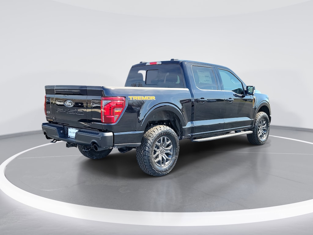 Agate Black Metallic 2025 Ford F-150 Tremor 4WD 10-Speed Automatic 3.5L V6 EcoBoost 4WD, 2nd Row Heated Seats, 4 Pickup Box Tie-Down Plates, Ambient Lighting, Auto High-beam Headlights, Auto-Dimming Rear-View Mirror, Automatic temperature control, Bed Utility Package, Console Worksurface, Electronic Locking w/3.73 Axle Ratio, Equipment Group 402A High, Front Axle w/Torsen Differential, Fully automatic headlights, Heads-Up Display, Heated front seats, Heated Steering Wheel, Integrated Trailer Brake Controller, LED Box Lighting, LED Taillamps, Media Bin Door, Mobile Office Package, Modular Front Bumper & Carbon Black Rear Bumper, Partitioned Lockable Rear Storage, Power Glass Heated Sideview Mirrors, Power Tailgate, Power-Adjustable Pedals w/Memory, Premium Wrapped Steering Wheel, Radio: B&O Unleashed Sound System by Bang & Olufsen, Rain-Sensing Wipers, Tow/Haul Package, Two-Speed Automatic AWD w/Mechanical Locking 4WD, Unique Tremor Leather-Trimmed Bucket Seats, Universal Garage Door Opener, Wireless Charging.